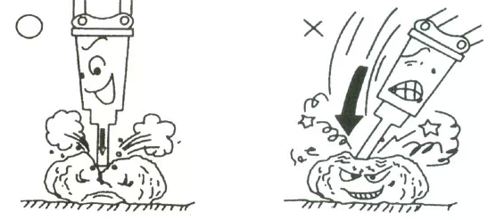 當(dāng)運(yùn)行破碎工作時(shí),請(qǐng)確認(rèn)釬桿著點(diǎn)的方向與擊破碎物的表面為垂直方向,并盡可能隨時(shí)保持;