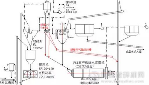 第二階段:對現(xiàn)有輥壓機(jī)雙閉路聯(lián)合粉磨工藝系統(tǒng)優(yōu)化改造