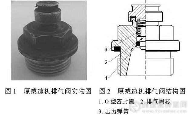 排氣閥,是減速機密閉油箱與外界進行氣體交換的必經(jīng)屏障。巴潤礦業(yè)分公司使用的是濕式永磁筒式磁選機,由減速機進行減速傳動,以達到磁滾筒所需的選別速度。由于磁選機減速機長期處于選廠高溫、高濕、多塵的環(huán)境中,減速機排氣閥經(jīng)常發(fā)生被礦漿堵塞的情況,導致減速機在運行過程中出現(xiàn)高溫、漏油現(xiàn)象,尤其是輸出端漏油較為嚴重,不僅造成污染、浪費,還嚴重影響磁選機的正常運行,導致設備停產(chǎn)。
