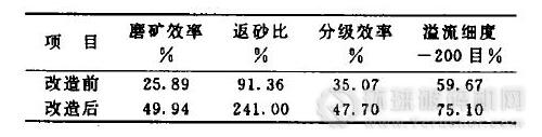 由分析可知,二次磨礦粒度偏粗是影響精礦質(zhì)量的主要原因,針對此原因,進(jìn)行了兩個方面的技術(shù)改造。