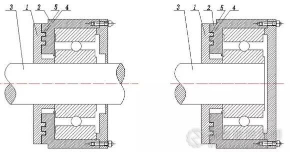 注:1-內(nèi)密封圈,2-外密封圈,3-軸,4-環(huán)形凸臺和凹槽