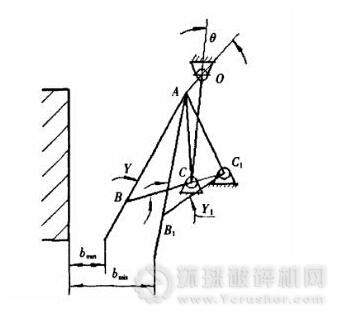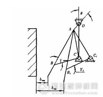 這里我們要討論的傳動角與排料口之間的關(guān)系,是指根據(jù)產(chǎn)品粒度要求,排料口的尺寸值從最小到最大變化與傳動角的關(guān)系。
