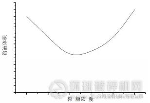 實(shí)際生產(chǎn)中可用稍高于最低流動(dòng)點(diǎn)的樹脂濃度。