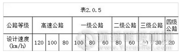 1.1 各級(jí)公路設(shè)計(jì)速度