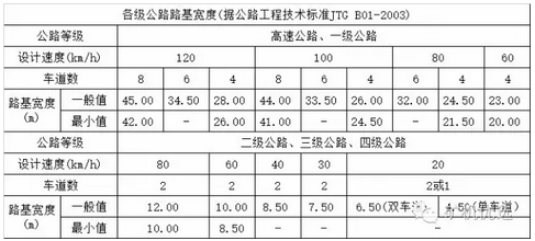 據(jù)【公路工程技術(shù)標(biāo)準(zhǔn)JTG B01—2003】規(guī)定(下文中各圖片均出自此標(biāo)準(zhǔn)),各級(jí)公路的路基寬度按設(shè)計(jì)車(chē)速不同采用不同寬度。