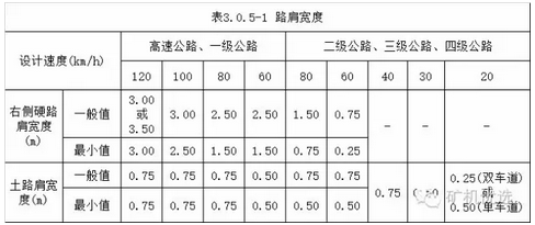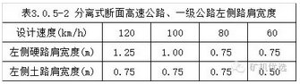 3. 按照設(shè)計(jì)速度的不同,路肩寬度的情況: