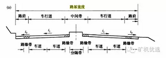 砂石路面的)路肩.)、車(chē)行道和中間帶。其中左(右)路肩寬度包括左(右)側(cè)路緣帶的寬度;中間帶包括兩側(cè)路緣帶和中間分隔帶。