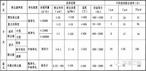 袋式除塵器作為一種高效除塵設(shè)備,其特點(diǎn)是利用多孔的袋狀過(guò)濾元件從含塵氣體中捕集粉塵,對(duì)微細(xì)粉塵的除塵效率也可達(dá)到99%以上,詳見(jiàn)表1,而且不受比電阻等性質(zhì)的影響,適應(yīng)性強(qiáng),在含塵濃度很高或很低的條件下,都能獲得令人滿意的工作效果。此外,其規(guī)格多樣,應(yīng)用靈活,便于收回干物料,沒(méi)有污泥處理廢水污染等問(wèn)題。
