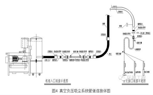 5)管道系統(tǒng)連機(jī)調(diào)試時(shí),要對(duì)全部節(jié)點(diǎn)逐一檢查,不得泄露,以保證管道內(nèi)的負(fù)壓。
