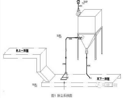 在除塵系統(tǒng)設(shè)計(jì)中,必須抓住三個(gè)重要的環(huán)節(jié):1)塵源點(diǎn)的密閉,2)合理確定系統(tǒng)的設(shè)計(jì)風(fēng)量,3)吸塵罩的設(shè)置,這三者是決定整個(gè)除塵系統(tǒng)的大小、能效大小、投資大小、運(yùn)行費(fèi)高低和粉塵捕集效果的重要條件。下面結(jié)合一個(gè)工程實(shí)例,具體分析這三個(gè)環(huán)節(jié)在除塵系統(tǒng)設(shè)計(jì)中的重要作用。