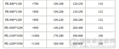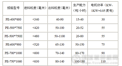 鄂式破碎機(jī)主要技術(shù)參數(shù):