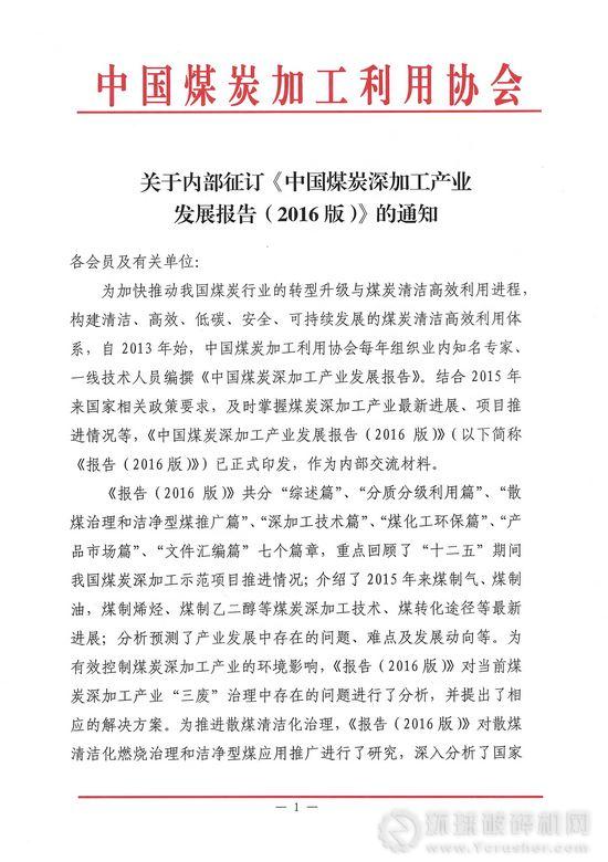 關(guān)于內(nèi)部征訂《中國(guó)煤炭深加工產(chǎn)業(yè)發(fā)展報(bào)告(2016版)》的通知