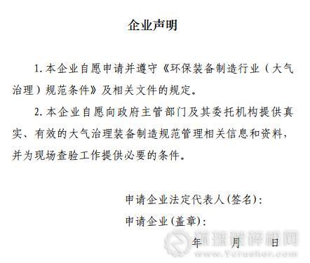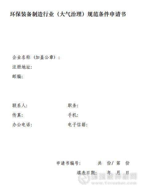 3.申請企業(yè)需編制《環(huán)保裝備制造行業(yè)(大氣治理)規(guī)范條件申請書》,并按要求提供相關(guān)證明材料。各省級工業(yè)和信息化主管部門依據(jù)本規(guī)范條件,對申請材料進行審查并提出推薦意見。