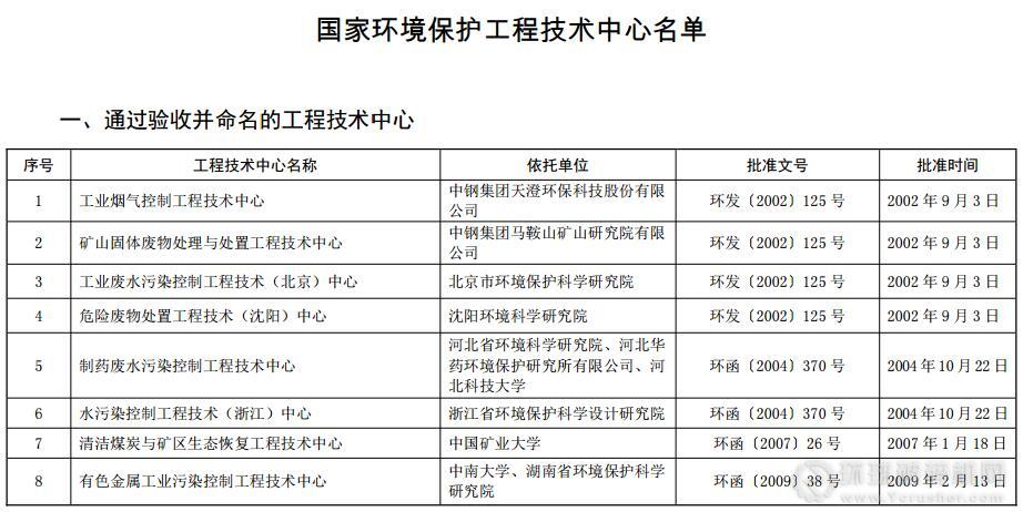 關(guān)于公布國(guó)家環(huán)境保護(hù)工程技術(shù)中心名單的函