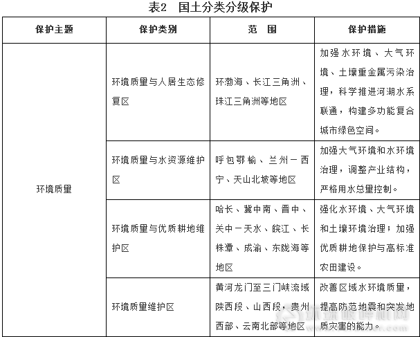分類分級(jí)推進(jìn)國土全域保護(hù)。以資源環(huán)境承載狀況為基礎(chǔ),綜合考慮不同地區(qū)的生態(tài)功能、開發(fā)程度和資源環(huán)境問題,突出重點(diǎn)資源環(huán)境保護(hù)主題,有針對(duì)性地實(shí)施國土保護(hù)、維護(hù)和修復(fù),切實(shí)加強(qiáng)環(huán)境分區(qū)管治,改善城鄉(xiāng)人居環(huán)境,嚴(yán)格水土資源保護(hù),提高自然生態(tài)系統(tǒng)功能,加強(qiáng)海洋環(huán)境保護(hù),促進(jìn)形成國土全域分類分級(jí)保護(hù)格局。