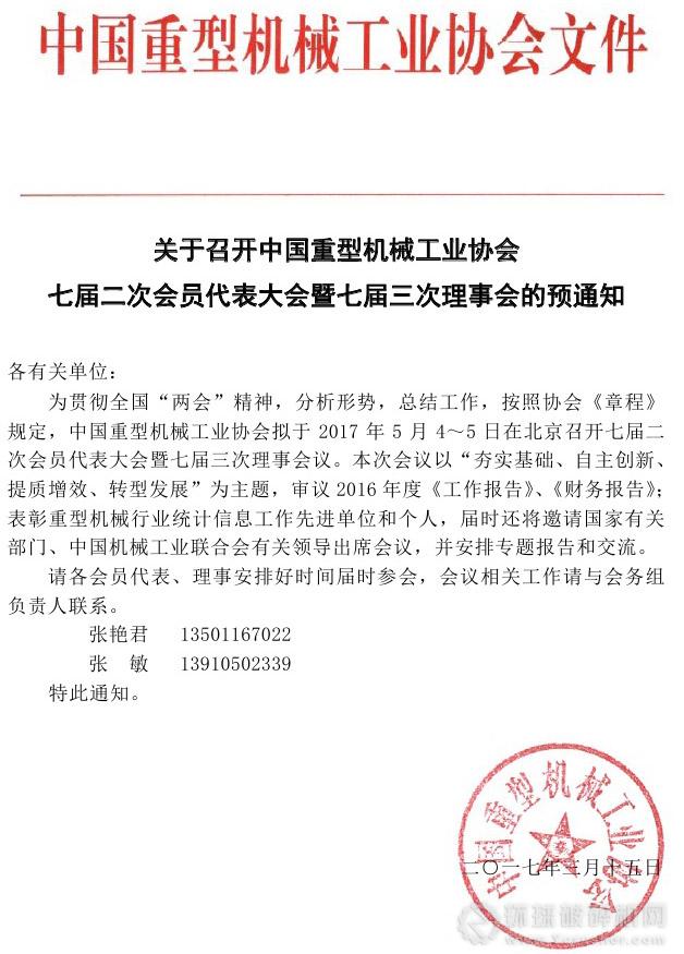 關(guān)于召開中國(guó)重型機(jī)械工業(yè)協(xié)會(huì)七屆二次會(huì)員代表大會(huì)暨七屆三次理事會(huì)的預(yù)通知
