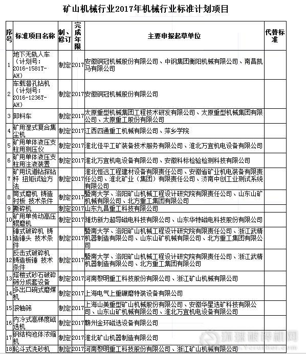 附件一:礦山機(jī)械行業(yè)2017年機(jī)械行業(yè)標(biāo)準(zhǔn)計(jì)劃項(xiàng)目