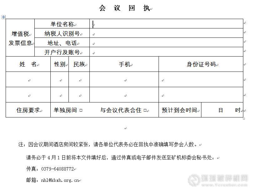 5、因賓館房間較為緊張,需提前預(yù)訂,請(qǐng)參會(huì)代表務(wù)必在4月1日前將會(huì)議回執(zhí)通過(guò)傳真或郵件發(fā)至秘書(shū)處;