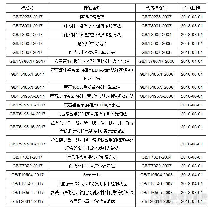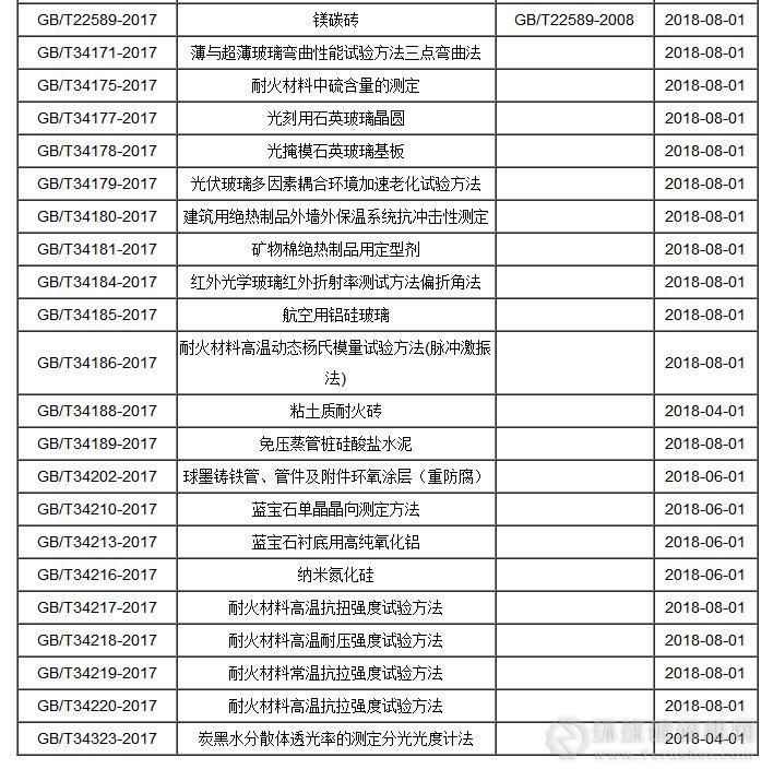 國家質量監(jiān)督檢驗檢疫總局、國家標準化管理委員會批準螢石、耐火材料等等300項國家標準和1項國家標準修改單,現(xiàn)予以公布。部分內容如下: