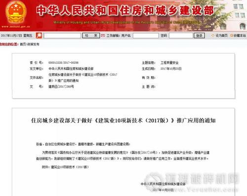 10月25日,在住房和城鄉(xiāng)建設(shè)部工程質(zhì)量安全監(jiān)管司的組織和指導(dǎo)下,由中國(guó)建筑科學(xué)研究院牽頭編制的《建筑業(yè)10項(xiàng)新技術(shù)(2017版)》(以下簡(jiǎn)稱“2017版”)正式發(fā)布。2017版包括10個(gè)大項(xiàng)、107項(xiàng)技術(shù),其中再生骨料混凝土技術(shù)、建筑垃圾減量化與資源化利用技術(shù)、垃圾管道垂直運(yùn)輸技術(shù)、基于GIS和物聯(lián)網(wǎng)的建筑垃圾監(jiān)管技術(shù)等4項(xiàng)技術(shù)名列其中。