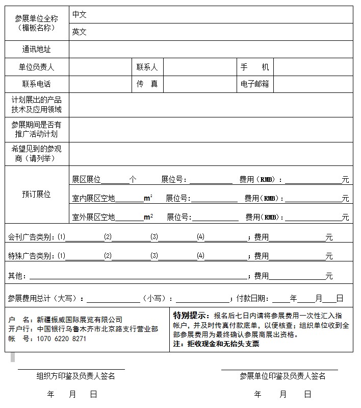 第九屆中國(guó)新疆國(guó)際礦業(yè)與裝備博覽會(huì) 參展申請(qǐng)表