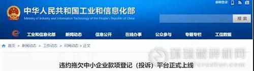 日前,工信部出大招,幫你要賬!——違約拖欠中小砂石等企業(yè)款項(xiàng)登記(投訴)平臺(tái)正式上線。該平臺(tái)由工業(yè)和信息化部中小企業(yè)局主辦,是面向全國(guó)中小企業(yè)反映跨省區(qū)拖欠問題和情況的登記(投訴)渠道。這對(duì)砂石企業(yè)可謂是“雪中送炭”!