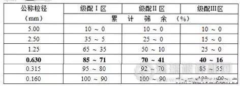 配制混凝土?xí)r宜優(yōu)先選用Ⅱ區(qū)砂。當(dāng)采用Ⅰ區(qū)砂時(shí),應(yīng)提高砂率,并保持足夠的水泥用量,滿足混凝土的和易性;當(dāng)采用Ⅲ區(qū)砂時(shí),宜適當(dāng)降低砂率;當(dāng)采用特細(xì)砂時(shí),應(yīng)符合相應(yīng)的規(guī)定。(具體可見下表)。