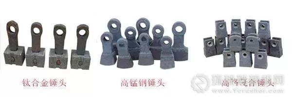 待破碎物料對(duì)錘頭磨耗的影響包括:物料的性質(zhì)、給料粒度的大小及含水量等因素,而其中要數(shù)物料性質(zhì)的影響,硬度越大的物料對(duì)錘頭的磨損越大。