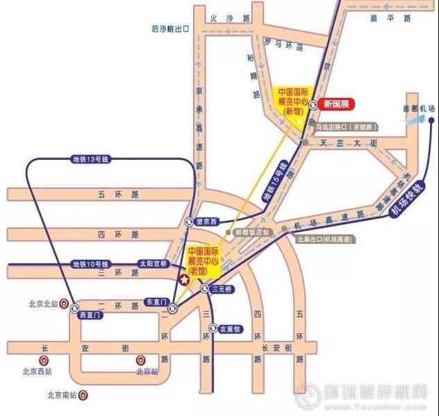 乘坐地鐵2號線至東直門站(或地鐵10號線至芍藥居站),換乘地鐵13號線至望京西站,換乘地鐵15號線,至國展(A口出),步行至展館。