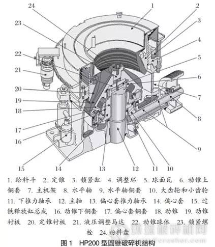 ?。?)由于該選廠HP200型圓錐破碎機正上方空間較小,緩沖礦倉未能直接安裝在其正上方,而是安裝在距破碎機100多米的地方,起不到調(diào)節(jié)、緩沖和保護作用,造成給礦時斷時續(xù),時多時少,旋轉(zhuǎn)力矩忽大忽小、正向反向交替變化,導(dǎo)致動錐有時順時針、有時逆時針、有時加速、有時減速旋轉(zhuǎn),對動錐上下銅套的損害很大。