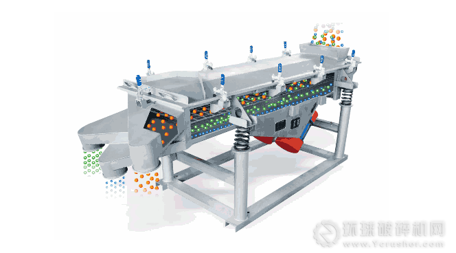 特點:偏心軸直接帶動篩框在垂直面內(nèi)做振幅相當(dāng)于偏心距2倍的軌跡運動;結(jié)構(gòu)堅固,給料量變化時振幅不變,振動力度大且恒定,不宜堵塞篩孔;軸承結(jié)構(gòu)復(fù)雜,慣性大,工作時由于不完全平衡易引起建筑物同時振動。