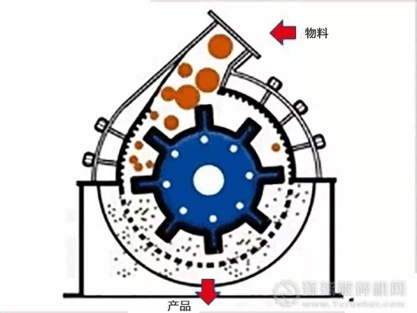 缺點:襯板磨損快,產(chǎn)品粒形不好,針片狀較多,產(chǎn)量低,需強制給料;