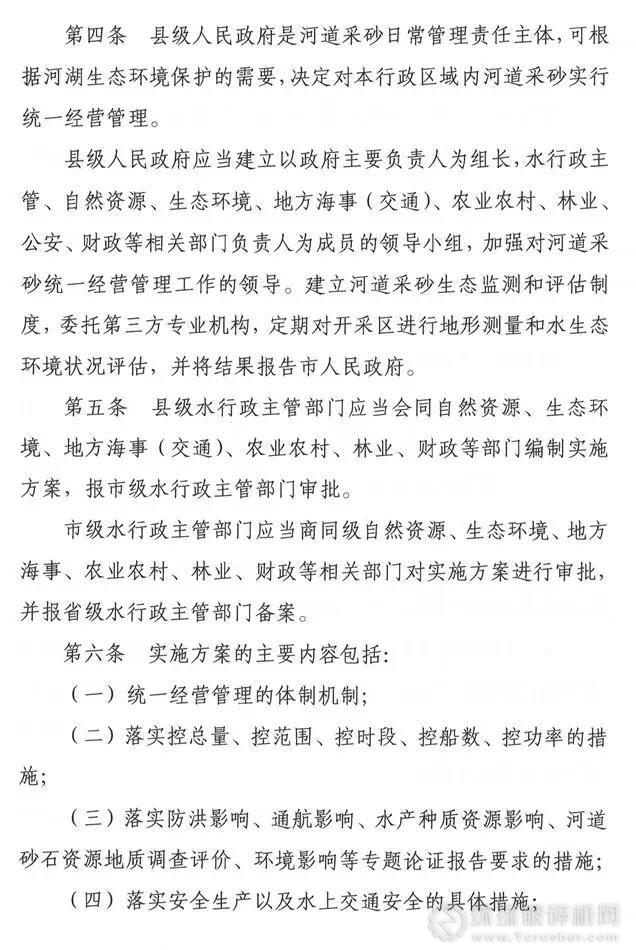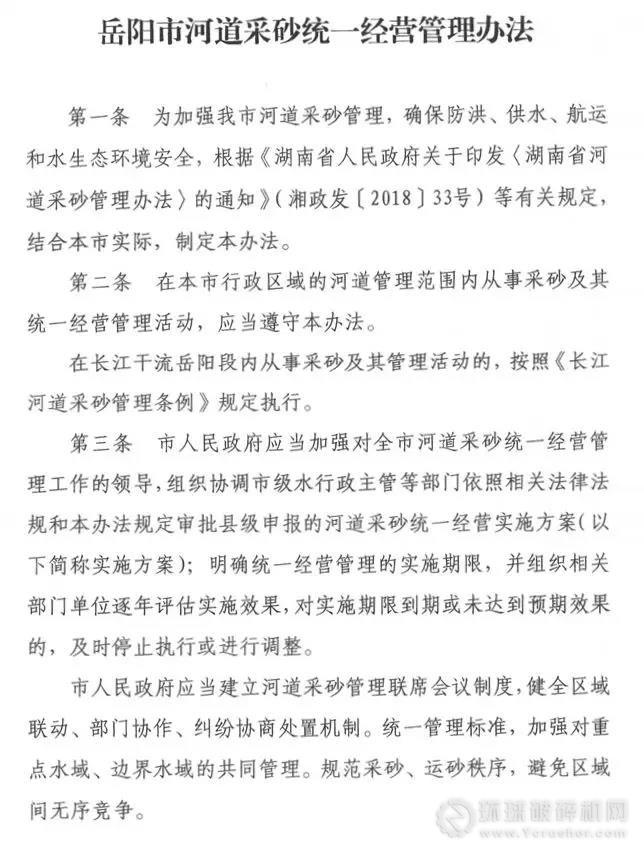 日前,《岳陽市河道采砂統(tǒng)一經(jīng)營管理辦法》正式發(fā)布,該市河道采砂統(tǒng)一國營有了法規(guī)依據(jù)。