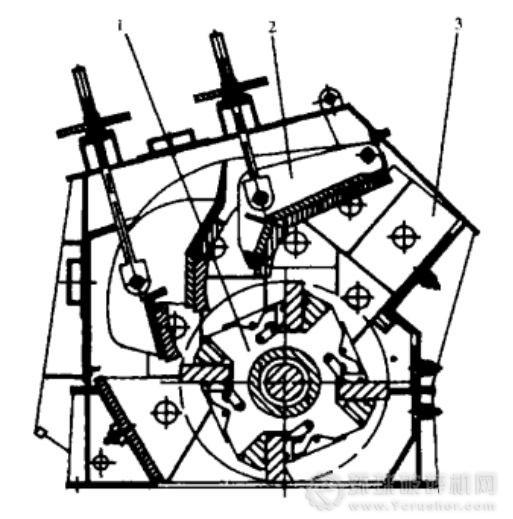 1-轉(zhuǎn)子 2-反擊板 3-機(jī)殼