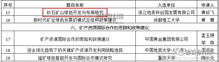 10月8日,自然資源部網(wǎng)站公布全國礦產(chǎn)資源規(guī)劃(2021-2025年)前期研究選題遴選結(jié)果,砂石綠色開發(fā)布局、建筑石料與社會(huì)經(jīng)濟(jì)發(fā)展關(guān)系等成功入選!