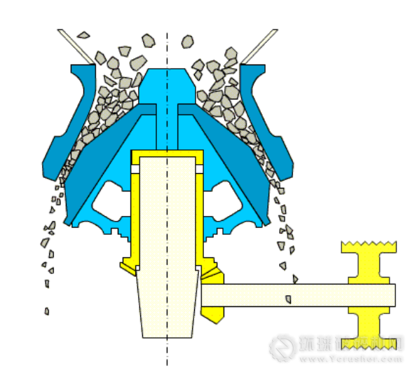 圓錐破碎機的給料方式對于破碎壁和軋臼壁的使用壽命也有一定的影響。若圓錐破碎機給料裝置安裝不當(dāng),或是投入破碎腔內(nèi)的物料過多,將會導(dǎo)致給料不均勻,破碎腔內(nèi)物料堵塞等故障,使破碎壁軋臼壁單邊受力過大,加大礦石對其的切削磨損,使襯板受損嚴(yán)重,使用壽命會降低。