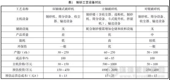 通過對以上3種制砂工藝設備優(yōu)缺點進行對比(見下表):