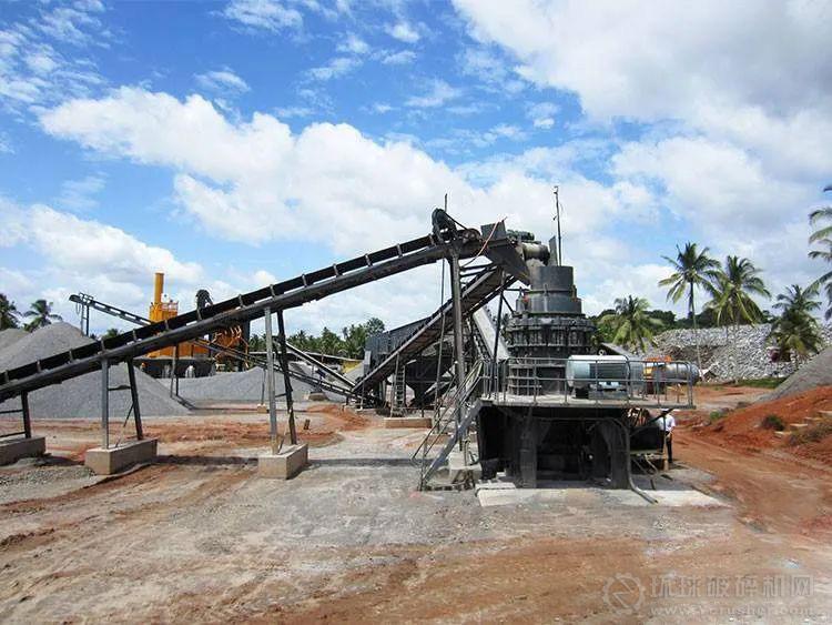 顎式破碎機的排料。受原料來源和粗碎段給料機預篩分不足的影響,粗碎顎破的排料中含有不少的細物料(小于中碎圓錐破排料口或者可直接進入下一破碎段的物料),所以應在中碎圓錐破碎機前增加預篩分設備。