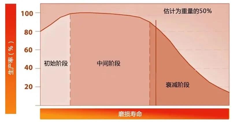 從生產(chǎn)率的角度看,一塊襯板的有效使用周期大致可以分為三個(gè)階段: