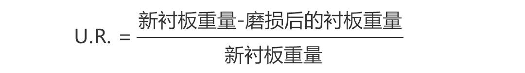 當(dāng)襯板磨損的利用率達(dá)到50%時(shí),確定每小時(shí)產(chǎn)量減少多少?lài)?。如果這個(gè)值高于產(chǎn)量的10%,建議更換襯板。