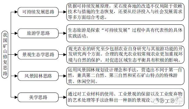 4)礦山公園模式??梢詫U棄礦山基于反映礦業(yè)開(kāi)采過(guò)程的目的進(jìn)行改造,并結(jié)合對(duì)礦山開(kāi)采后植被環(huán)境的修復(fù),為人們展示礦業(yè)發(fā)展的歷史脈絡(luò),起到科學(xué)考察、科普教育的作用。
