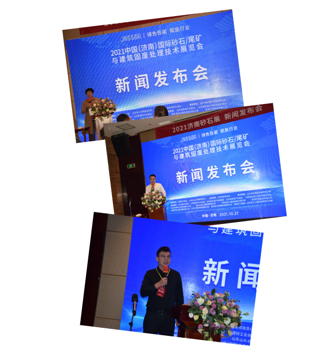 10月21日上午,2021濟(jì)南砂石展新聞發(fā)布會在濟(jì)南舜和國際酒店成功召開?,F(xiàn)場發(fā)布:由中國砂石協(xié)會支持,山東省砂石行業(yè)協(xié)會主辦、山東海名國際會展有限公司承辦的“2021年中國(濟(jì)南)砂石/尾礦與建筑固廢處理技術(shù)展覽會”將于2021年12月10-12日,在山東國際會展中心盛大召開,將成為中國砂石行業(yè)集展覽、交流、學(xué)習(xí)、采購等多種功能于一體的全新商務(wù)平臺。