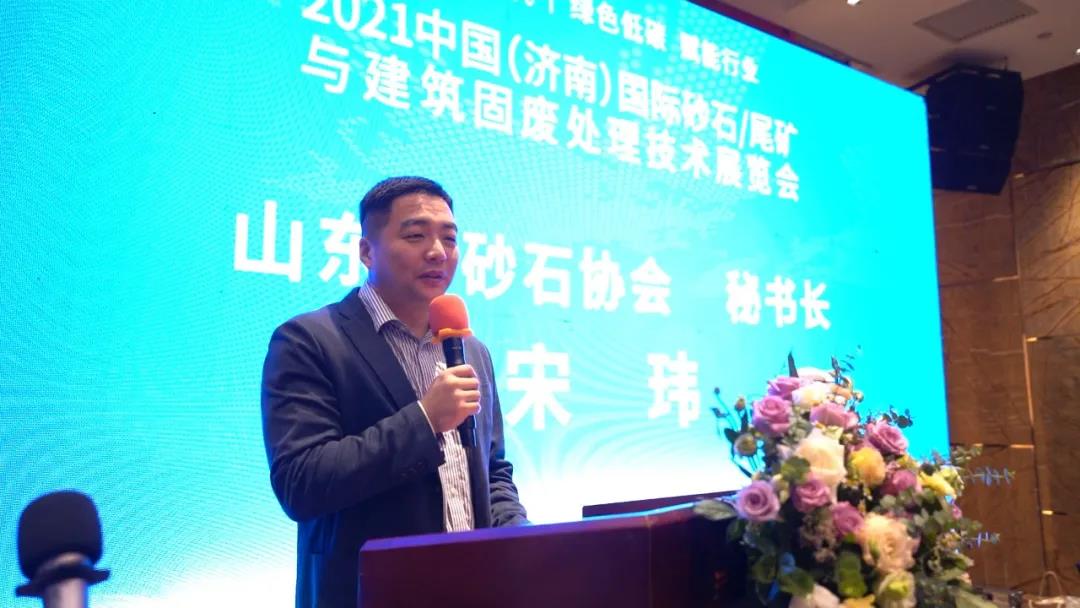 為了使砂石行業(yè)提前了解到濟(jì)南砂石展的戰(zhàn)略布局及規(guī)劃,山東省砂石協(xié)會秘書長宋瑋上臺為大家做展會介紹:2021濟(jì)南砂石展將于12月10-12日在山東國際會展中心舉辦。重點突出專業(yè)性、科技性和前瞻性,展示機(jī)制砂領(lǐng)域最新生產(chǎn)技術(shù)和發(fā)展趨勢。展會設(shè)展面積約20000平米,展商數(shù)量超300家,展示范圍涵蓋全產(chǎn)業(yè)鏈,打造砂石骨料及建筑固廢處理裝備一站式采購平臺。在展會現(xiàn)場,展商與采購商實現(xiàn)當(dāng)面洽談、精準(zhǔn)對接,現(xiàn)場簽約,幫助展商完成品牌推廣與代理合作。展會同期將舉辦多場論壇活動,千余家砂石骨料生產(chǎn)企業(yè)、混凝土生產(chǎn)企業(yè)、水泥制品企業(yè)、建設(shè)施工企業(yè)共同參與,實現(xiàn)產(chǎn)業(yè)鏈上下游同步對接合作。