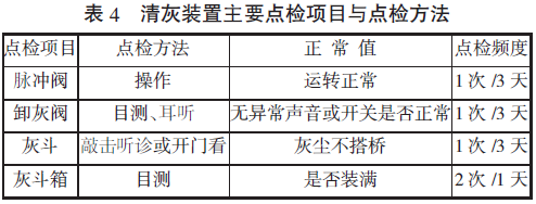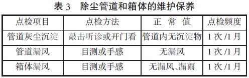 除塵管道和箱體的維護(hù)保養(yǎng)點(diǎn)檢項(xiàng)目與方法如表3所示.