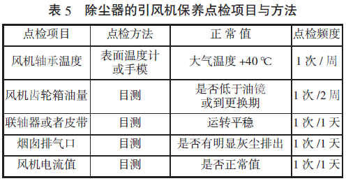除塵器的引風(fēng)機(jī)保養(yǎng)點(diǎn)檢項(xiàng)目與方法如表5所示。