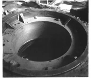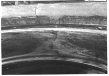 動(dòng)錐襯板裂紋如圖2所示,上、下架體止口配合面磨損如圖3所示。
