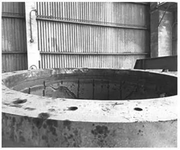 破碎機(jī)頻繁過鐵容易造成破碎機(jī)動(dòng)、定錐襯板裂紋,從而縮短襯板使用壽命,增加備件消耗。動(dòng)錐襯板裂紋如圖1所示。