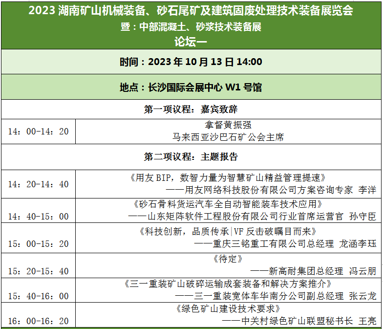 2023中國(guó)(湖南)礦山機(jī)械、砂石尾礦與建筑固廢處理暨中部混凝土、砂漿技術(shù)裝備新技術(shù)裝備展覽會(huì),將于10月13-15日在長(zhǎng)沙國(guó)際會(huì)展中心舉辦。