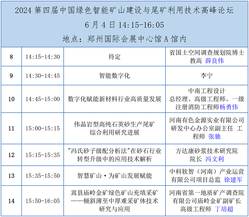 礦山機械、砂石裝備、尾礦處理前沿動態(tài)。屆時,將有14場論壇報告,為參會者帶來一場知識的盛宴。