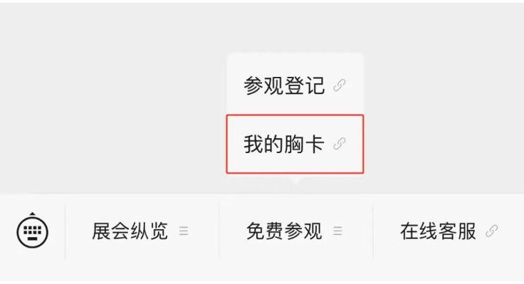 截圖保存電子胸卡,或至bauma CHINA微信公眾號(hào)菜單欄【我要參觀】→【我的胸卡】隨時(shí)獲取電子胸卡。